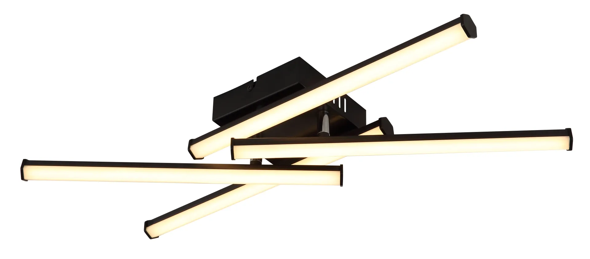 Moderna LED plafonjera KIRINA brenda Globo Lighting odlikuje se inovativnim kvadratnim dizajnom sa četiri rotirajuća heksagonalna profila koji omogućavaju zanimljiv vizuelni efekat i fleksibilno usmjeravanje svjetlosti. Kombinacija mat crnog kućišta i opal difuzora stvara elegantan izgled i ravnomjerno osvjetljenje prostora. Ova plafonjera je idealna za dnevni boravak, kuhinju, hodnik ili kancelariju.